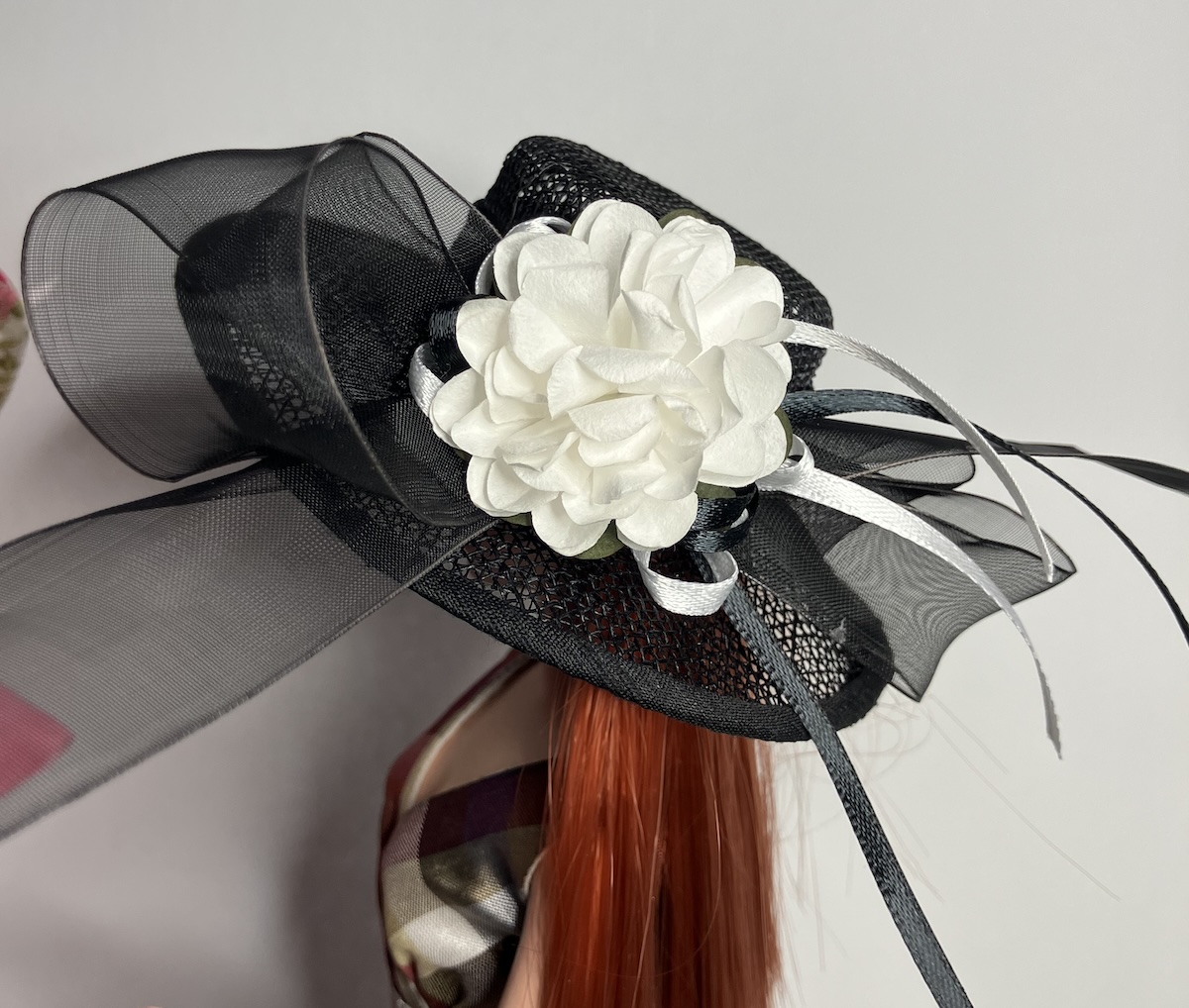 These last two are my favourites of the seven (7!) doll hats I’ve made in the past week or so. I’m going to take a break from sinamay now. Soon, the coloured sinamay will arrive from the UK and it will start me all over again. Not today, though.