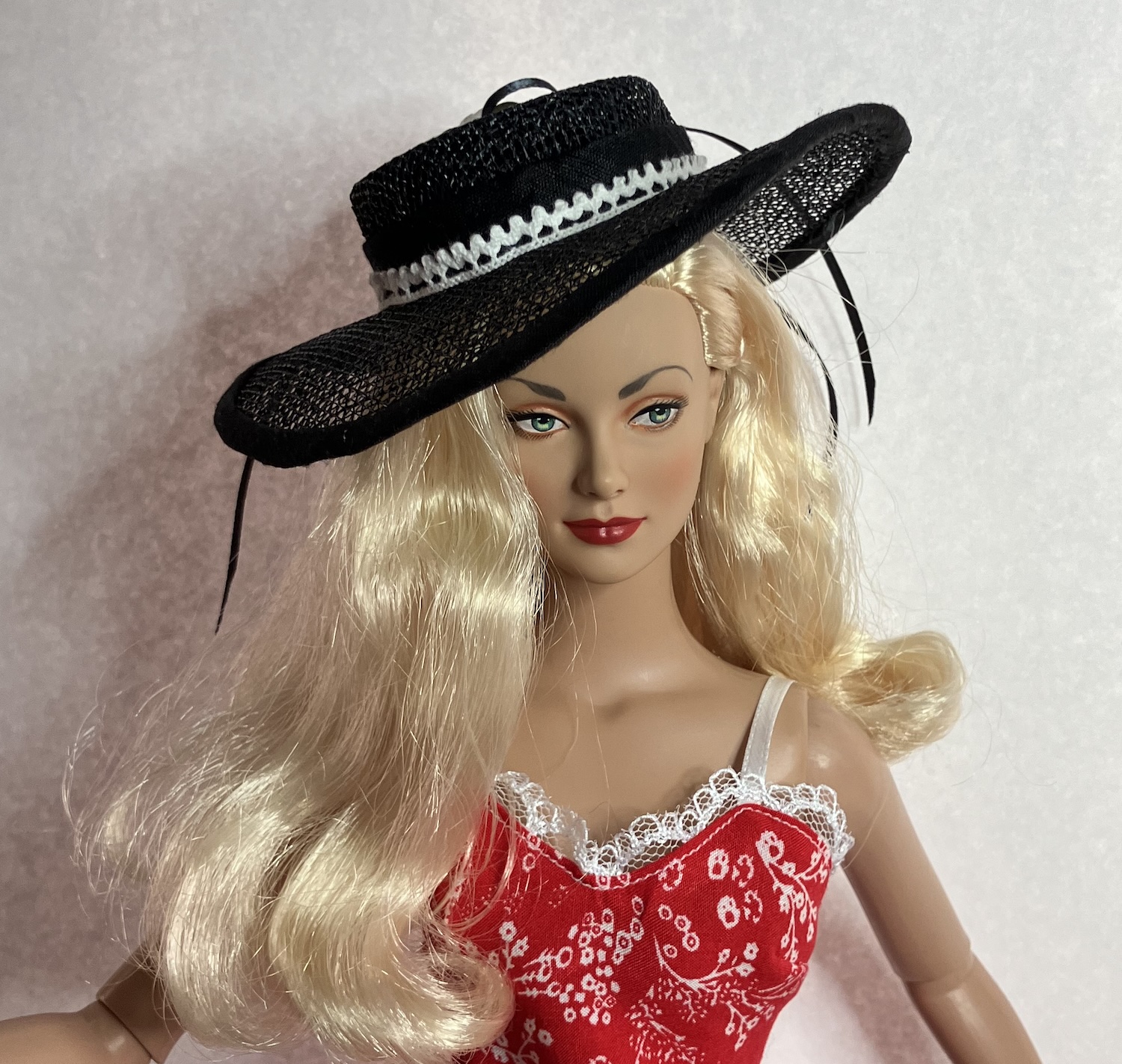 I added lace to the hatband of this one, but it’s still not a fave look for me. (It doesn’t help that the girls aren’t dressed to match. Lacey is in her altogether, while Daphne is still in her lingerie.)
