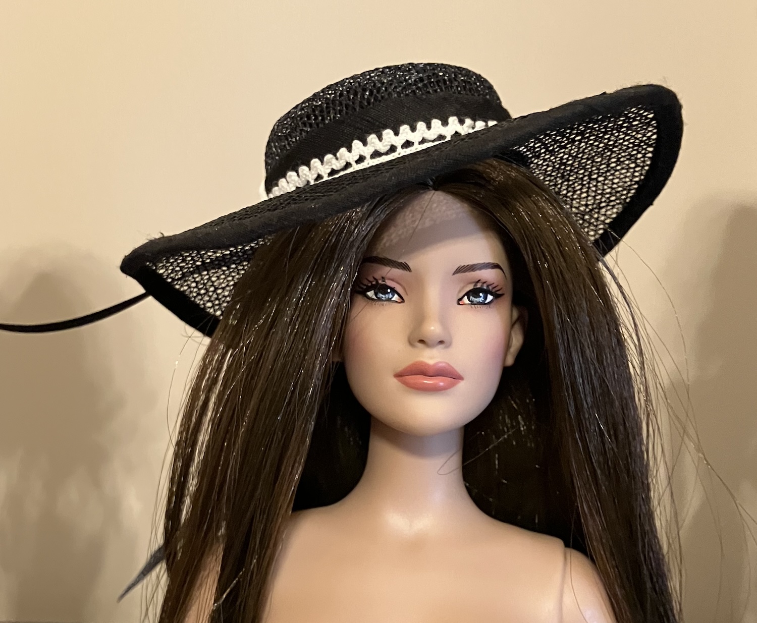 The shorter crown, about 1.5cm, is really good for the 11-12″ dolls. It maybe could be a little smaller in diameter for the Silkie girls, but again, that depends upon their hairstyle. This hat is never going to fall over their eyes, and the wire in the brim means it can be shaped.