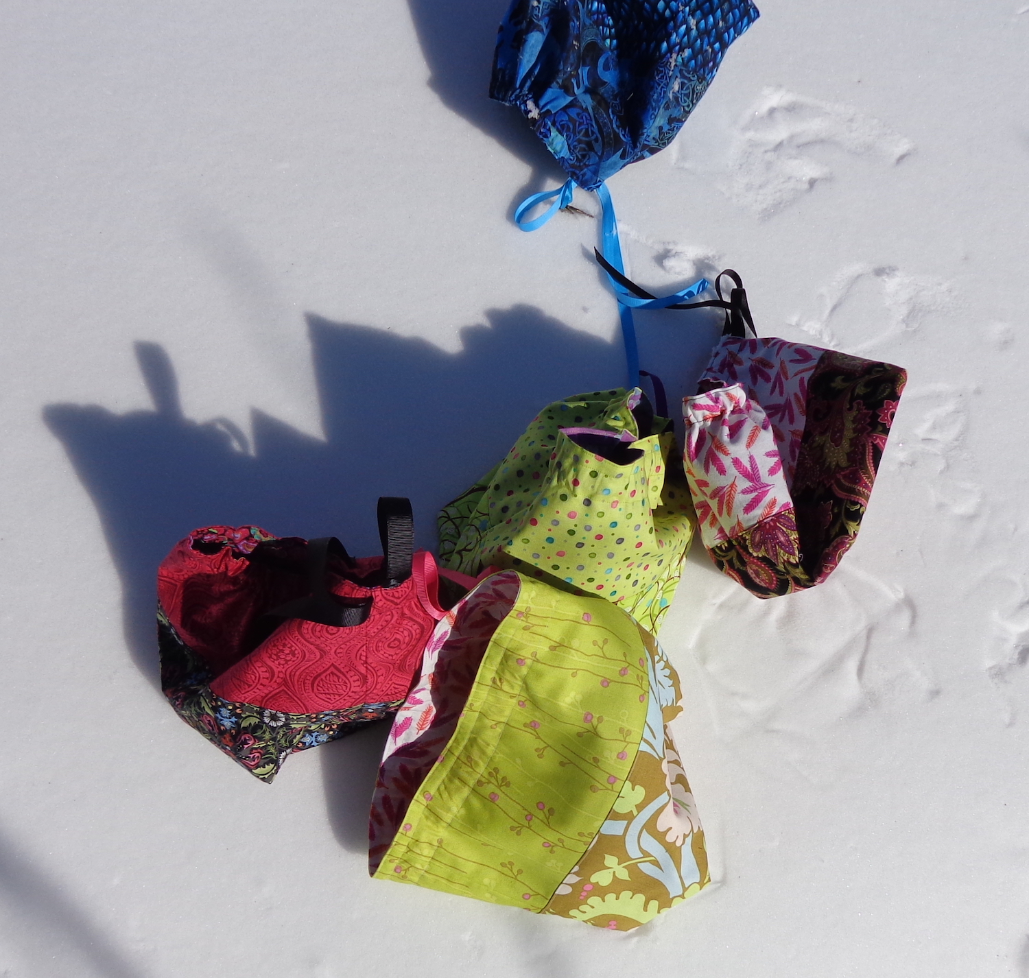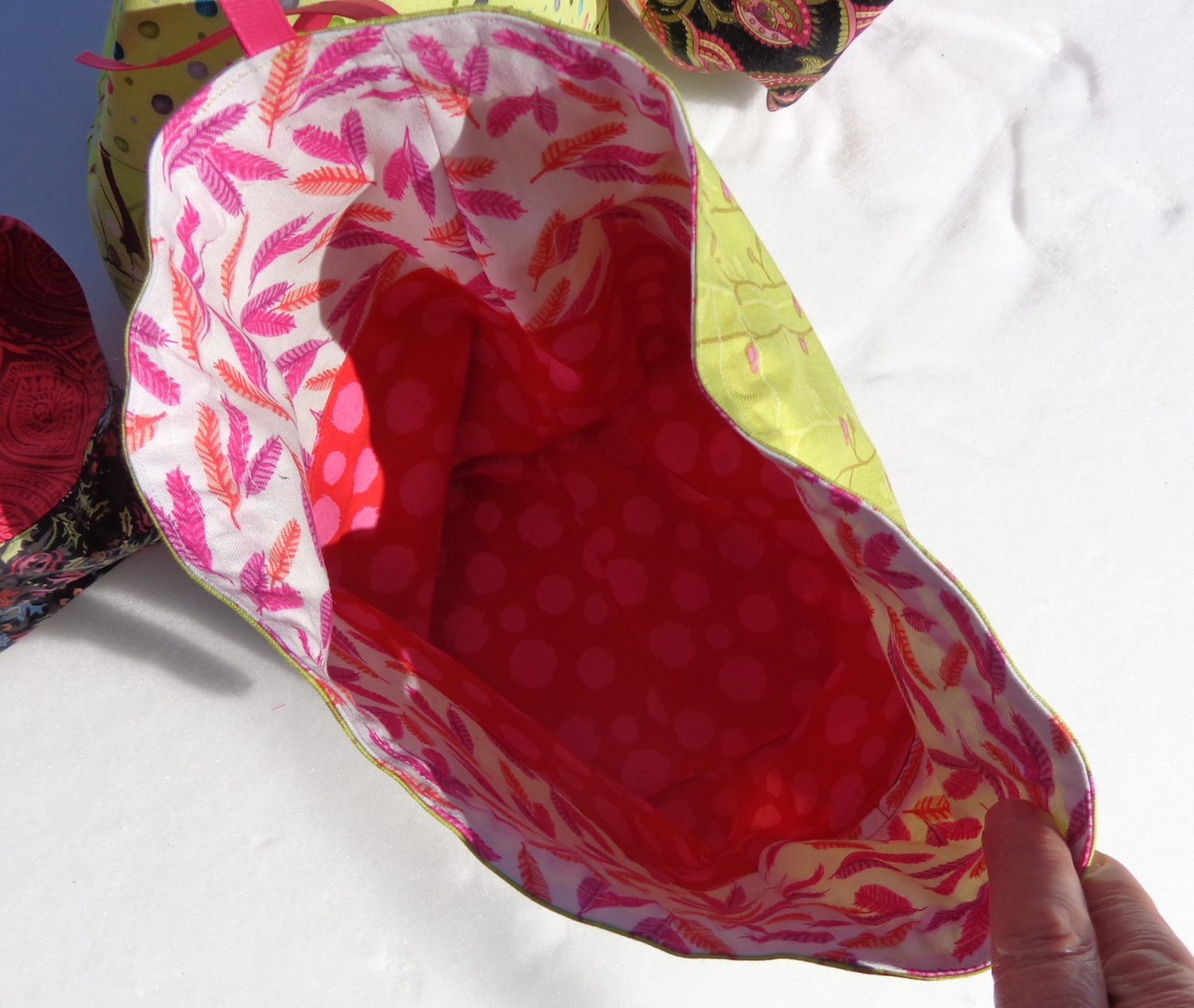 Beautiful project bags. I have a pile of fabric quarters that I bought for project bags that I must deal with when I return north!! I like making my own because I prefer a zipper closure although I own many drawstring closure bags.