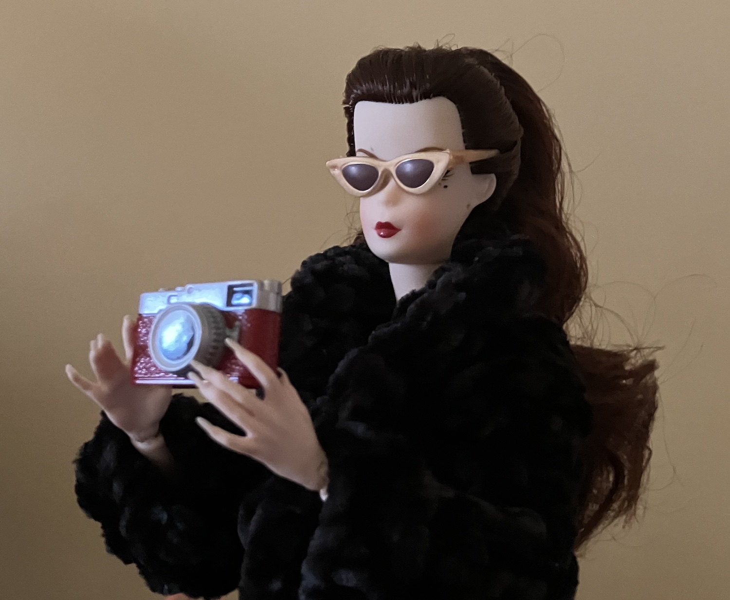 I realized that my new girl reminds me of Natasha from The Rocky and Bullwinkle Show – did you know the character’s name is Natasha Fatale? I didn’t. That’s a Wiki link – so I put her hair in a ponytail and dressed her in a chenille coat.