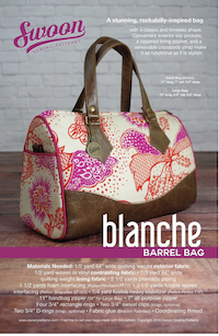 The pattern is the Blanche Barrel Bag from Swoon Patterns. I bought a paper pattern from Emmeline Bags because I was buying some hardware from them anyway. It’s also available as a PDF. (The first link is to the designer’s website.)