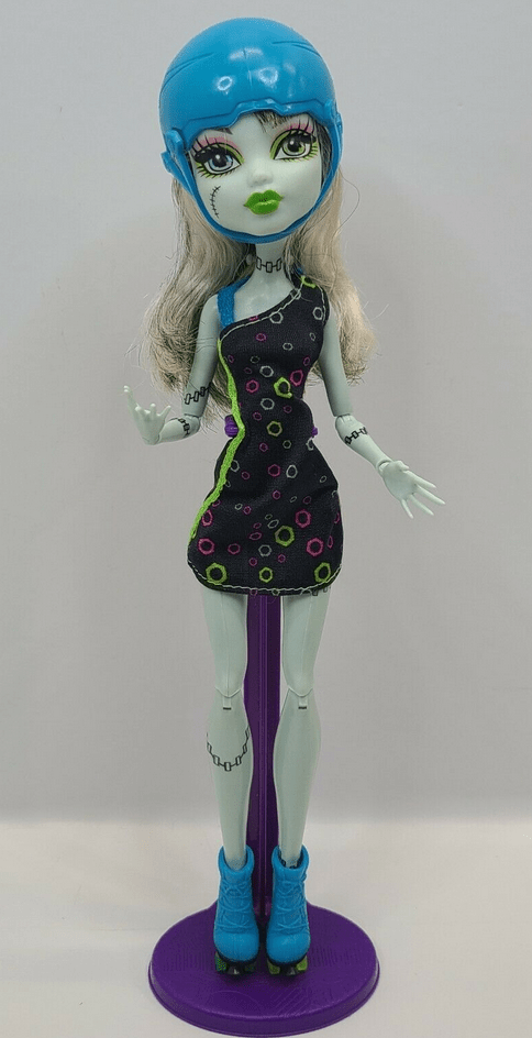 These are 10″ dolls with skinny skinny bodies. They are fun. Here’s how my Monster High girls would have looked new-in-box, but most of them came from the thrift store and were naked. They pretty much all needed their hair washed, too. (Only EAH Madeline Hatter and MH Lagoona Blue Creeproduction were new when they came to me.)