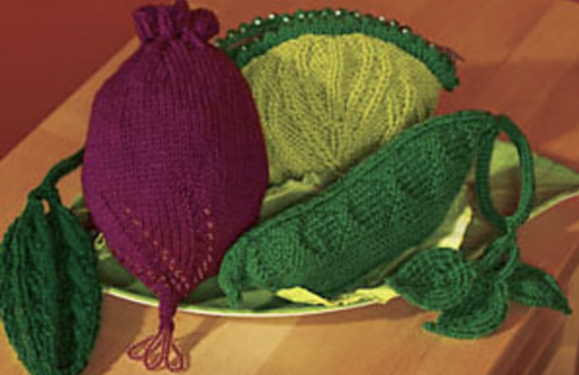 The beet and the grapes are also cute, but I have no idea what I did with the pattern. Hmm. If I find the yarn, I’ll hunt down the pattern. I do remember that the brighter purple (for the beet) was called Fairy Tale. 🙂