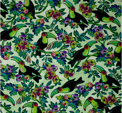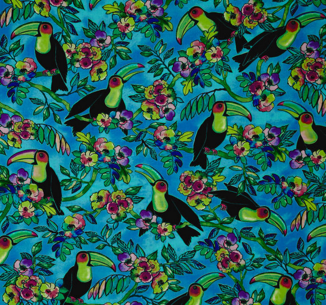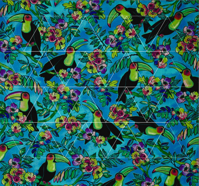 IRL, the print is a bit brighter. It’s called Toucan Do It, designed by June Bee for Ink and Arrow Fabrics. This shows an 18″ square of the fabric.