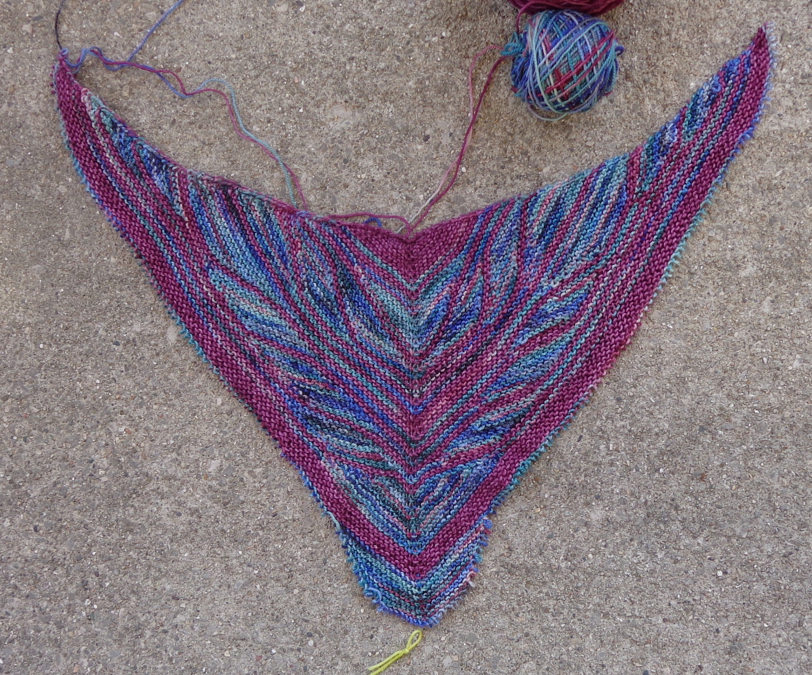 Another project off the needles. The Which Way Shawl is done and here it is: