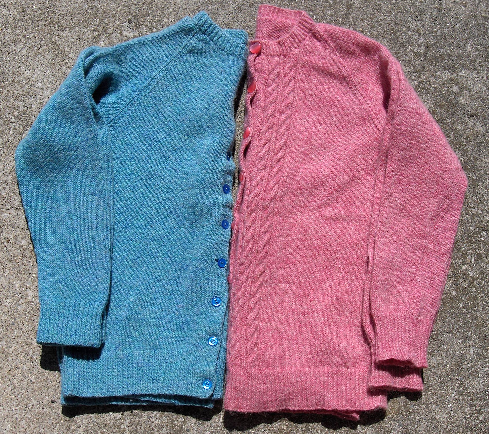 Once upon a time, I found a cardigan at a thrift sale. It was $1 and handknit from wool. I couldn’t leave it behind. (This is a problem I have at thrift sales.) A year later, I went to the same sale (it’s an annual one) and found another cardigan, handknit in wool for $1. I brought it home too. It was only once I got the second one home, that I saw how similar they were. I think they were knitted by the same person.