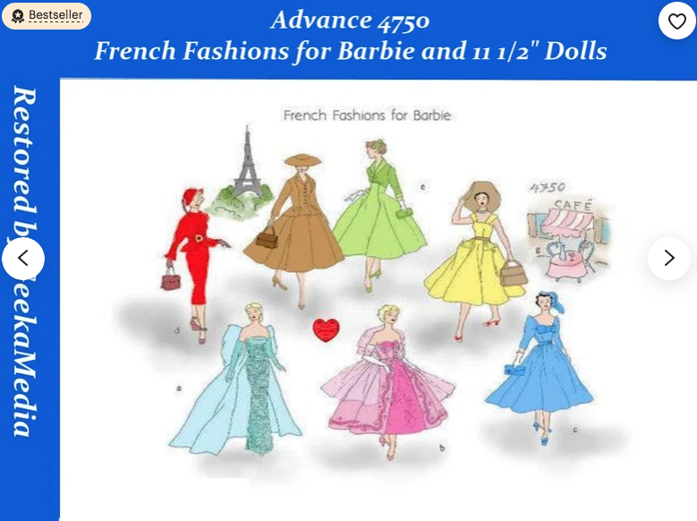 If you’re a fan of the vintage Barbie outfits and would like to reproduce them yourself, I found another site for you. This designer has patterns for many of the vintage outfits, available as PDF downloads. I haven’t tried any of them, but it looks like a great resource. His site is called Tailored Doll Patterns and there are patterns for Barbie and other dolls. Here’s his site.