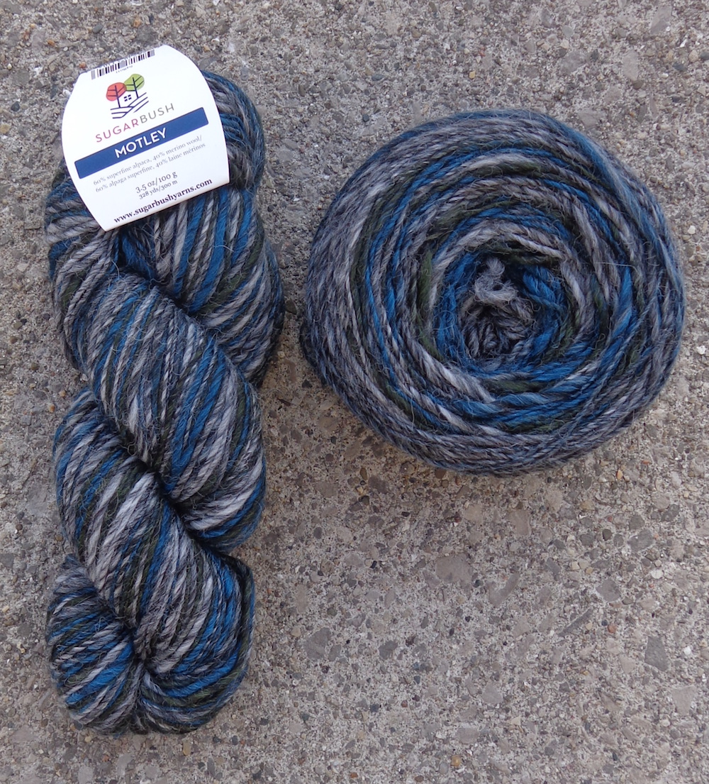 #75 is third from the left. I also have #83 which is on the far right. It’s a really fuzzy yarn and was a bit of a splurge at the time. In the skein, it didn’t look so stripey, but (of course) it is. It shed a bit while I was knitting, but I hope it’s done with that.